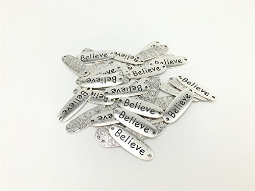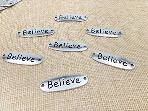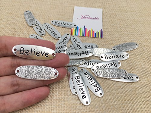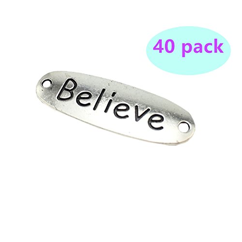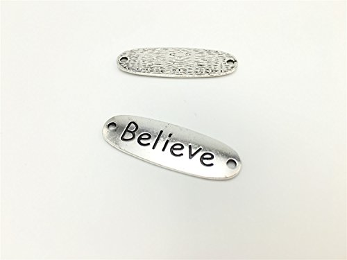Yansanido Pack of 40 Alloy ''Believe'' Message Connector 11x33mm for Adjustable Rope Bracelet Link Pendant Connector Findings for Making Bracelet and Necklace (Believe 40pcs Silver)