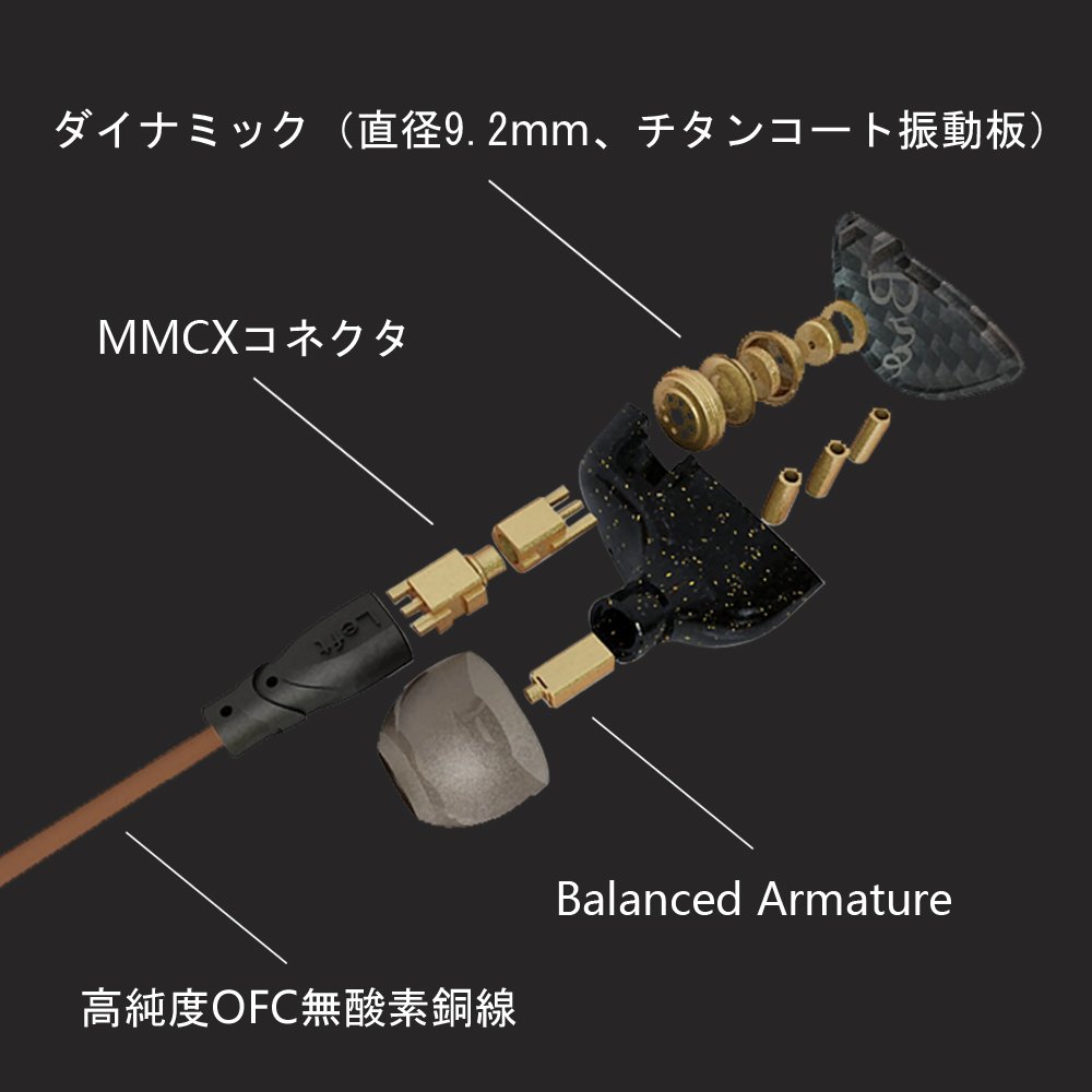3. Driving method: hybrid of 1 BA + 1 dynamic (diameter 9.2 mm, titanium coat diaphragm)