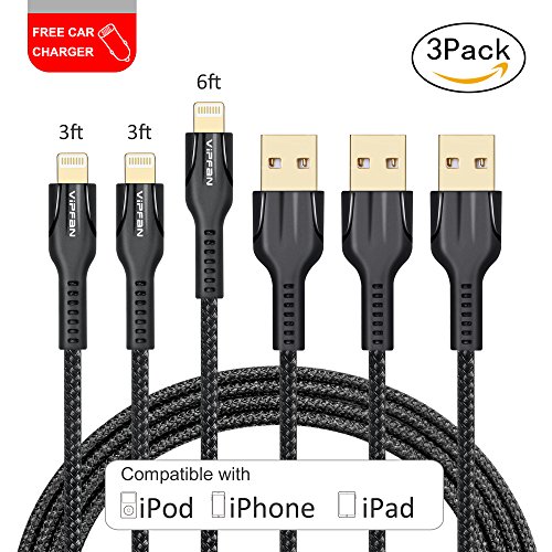 Studio : vipfan Publisher : vipfan Binding : Electronics Product Description VIPFAN USB Lightning Cable Charge and sync with speed. Incredible Durability -- 2017 New Fish Net Nylon Braided We bent this cable over 10000 times and saw no damage or change in performance. Premium nylon fabric feels great and doesn't tangle. From VIPFAN, Trusted USB Charging Brand ? Faster and safer charging with our advanced technology ? Aim target:10 million satisfy customer and happy users High Speed Charge Sync Charge around 40% faster than most standard iPhone cables and sync at speeds of up to 480Mbps 2X Longer With an extra-long 6ft cord, connect your phone, tablet or other devices further than before. Superb Fit Our compact heat resistant aluminum alloy heads fit into almost all cases, big or small. Don't be denied your case of choice by a bulky cable. Worry-Free Warranty At VIPFAN, we believe in our products. That's why we back them all with an 12-month warranty and provide friendly, easy-to-reach support. Works With: iPhone X/8/8plus/7 / 7 Plus / 6s / 6s Plus /6 Plus / 6 / SE / 5s / 5c / 5, iPad Air / Air 2, iPad mini / mini 2 / mini 3, iPad (4th generation), iPod nano (7th generation) and iPod touch (5th generation) Package contain: 2*3ft lightning cable 1*6ft lightning cable 1*Car charger (VIPFAN choice) 1*Thanks Card