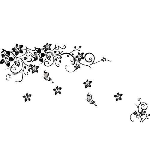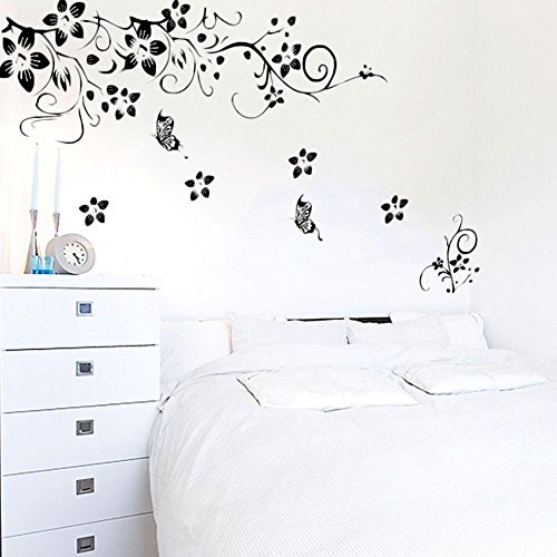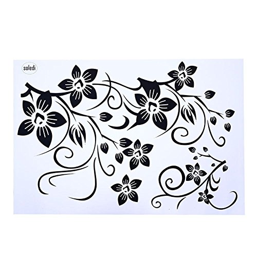 -. Title : Soledi® Home Room Art Wall Decor Black Vines Flowers Butterfly Removable Wall Decal Vinyl Mural Wall Sticker DIY New Hot Living Room Office Homedecoration