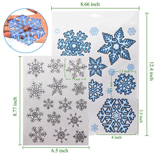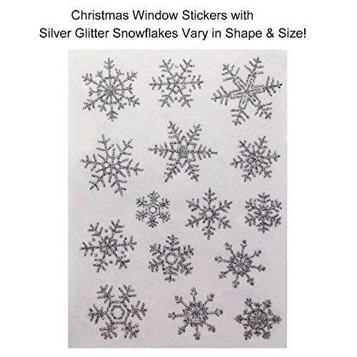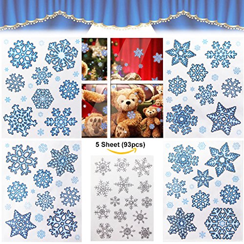 - ❄Quantity & Design: 5 sheets beautiful snowflakes glueless PVC window decals sticker, including 93pcs silver glitterin snowflakes vary in shape and size!