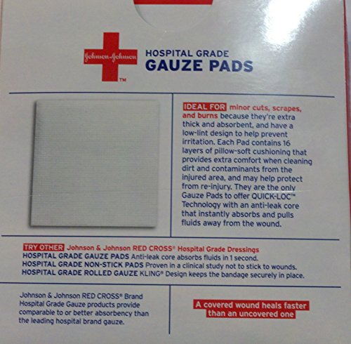 -. Binding : Health and Beauty -. EAN : 0381370085249 -. Feature : Anti-leak core absorbs fluids in 1 second / Each pad contains 16 layers of pillow-soft cushioning that provides extra comfort when cleaning dirt and contaminants from the injured area. / Pack of 3 boxes containing 10 large sterile pads per box (30 total gauze pads) -. IsAdultProduct : 0 -. Label : Johnson & Johnson -. Manufacturer : Johnson & Johnson -. MPN : Joh-8599 -. PackageQuantity : 3 -. PartNumber : Joh-8599 -. ProductGroup : Health and Beauty -. ProductTypeName : HEALTH_PERSONAL_CARE -. Publisher : Johnson & Johnson -. Studio : Johnson & Johnson -. Title : Johnson and Johnson Hospital Grade Gauze Pads 10 Large Sterile Pads 4 in X 4 in (Pack of 3) -. UPC : 381370085249