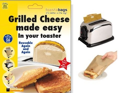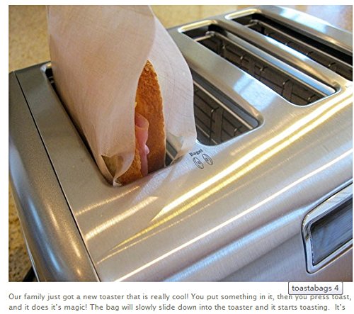 Studio : Grocery House Publisher : Grocery House Product Description Perfectly Toasted Sandwiches with No Mess No Fuss Reusable up to more than 50 times each toaster bag Perfect for no mess cooking.Healthy, make toast without butter Use in Toaster, Microwave, Oven, Grill; Easy to use and clean Perfect for kids and adults.Great for families and college students to make breakfast