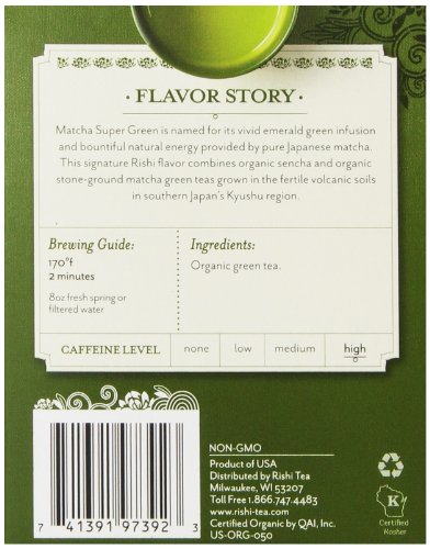 This revitalizing green tea combines premium sencha and matcha green teas from KiRishima Mountain in southern Japan for a tea with a smooth palate and incredibly deep umami sweetness. Matcha tea powder infuses the cup with an ultra-rich flavor and vivid green colorFeature