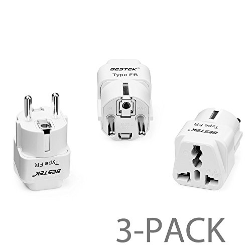 BESTEK [3-Pack] Grounded Universal Travel Plug Adapter for Europe, France, Germany (Schuko)