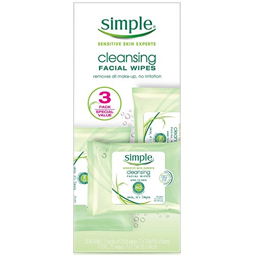 Simple Skincare Facial Cleansing Cleaning Wipes 25 ct (Pack of 3)