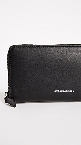 Product Description A smooth leather Mackage wallet with foil-stamped logo lettering at the front. The wraparound zip opens to a lined interior with 3 compartments, 10 card slots, 1 cash pocket and 1 zip pocket. 0