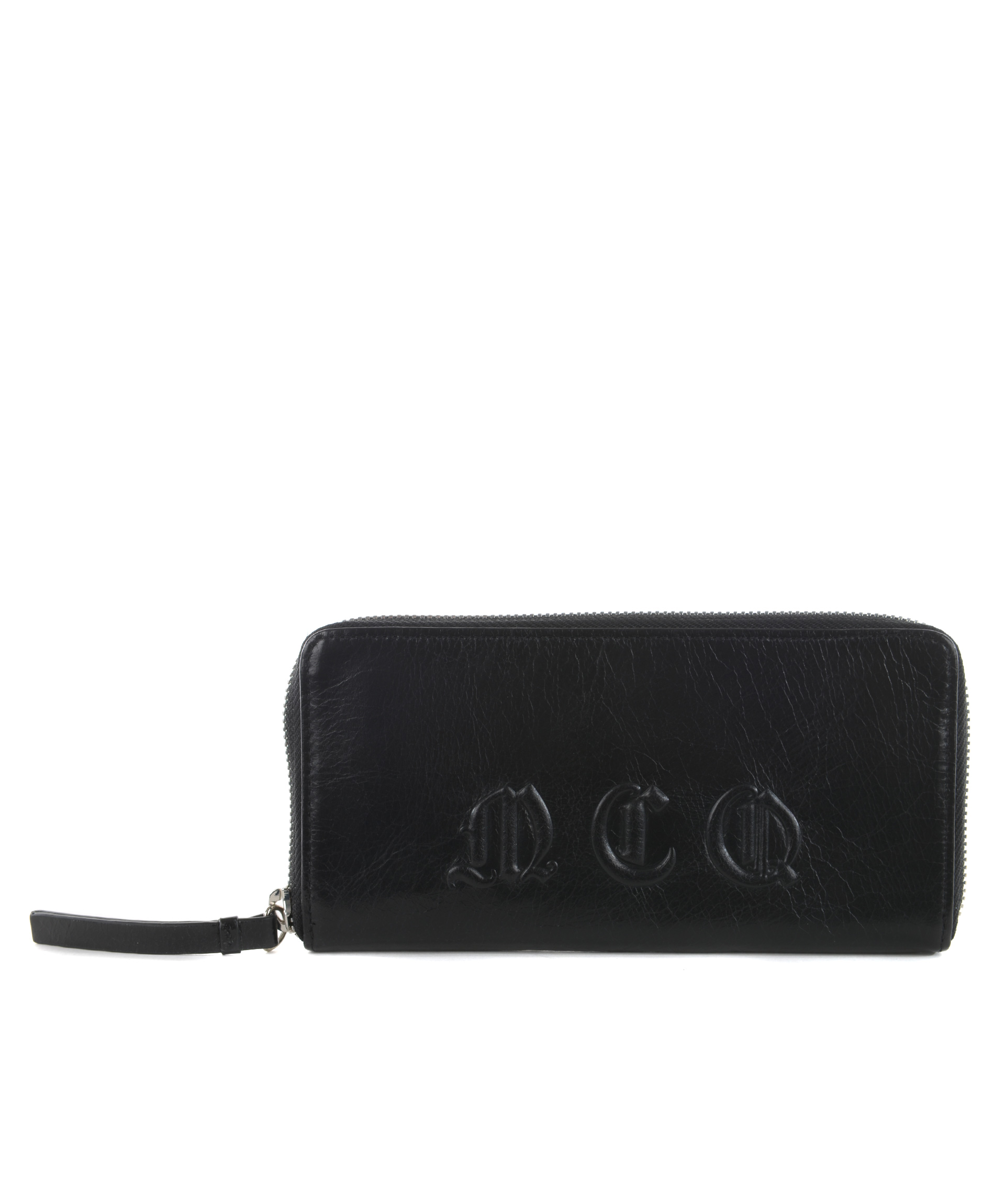 Portafogli MCQ Alexander McQueen in pelle cerata Nera. Logo frontale a rilievo. Chiusura con zip. All'interno tasca con zip, scomparti per banconote, tasche per carte di credito. Foderato.