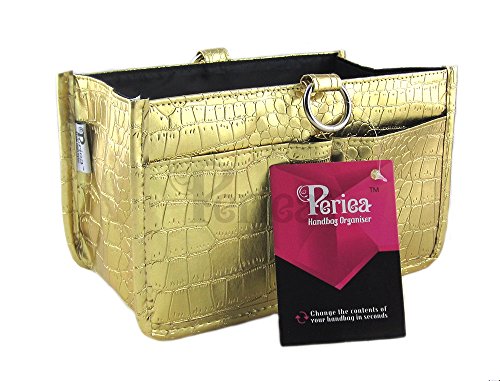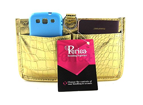 Studio : JNimports Publisher : JNimports Binding : Shoes Product Description Product name: Claire Size: L-24, H-14, W-16 (cm) Compartments: 10 large and 5 card slots Special features: Luxurious PU leather with crocodile texture Colour: Gold Code: JNB24GO Machine Washable: Yes Please check our shop as we have 5 colours of this bag and more coming soon! This is a brand new product from the Periea handbag organiser range! You'll never forget anything when you change handbags again; simply use this organiser to hold all your daily products, from hair brushes to purses and keys. You will never have to say again "I left it in my other bag." All you need to do is take the Periea handbag organiser out and place it in the bag you are going to use for the day. This handbag organiser boasts 15 compartments. With Luxurious PU leather with crocodile texture this handbag organiser its truly in a call of its own. You cannot find better vaule for money. Periea are the number one retailers for handbag organisers. Please check our shop for the largest range of handbag organisers in the world. 0