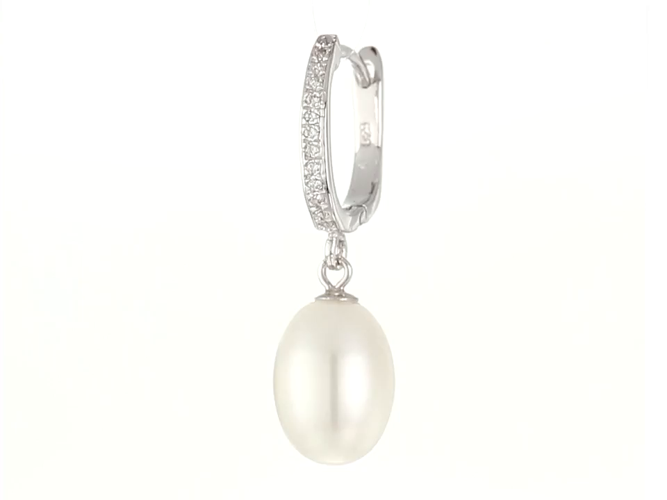 Bella Pearl Sterling Silver, Chinese Freshwater Cultured Pearl, and Cubic Zirconia Illusion Earrings