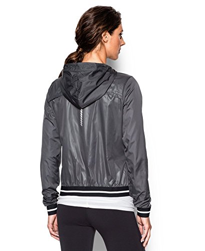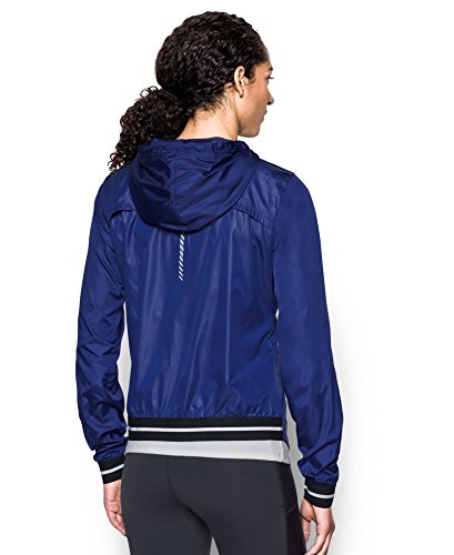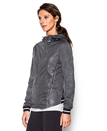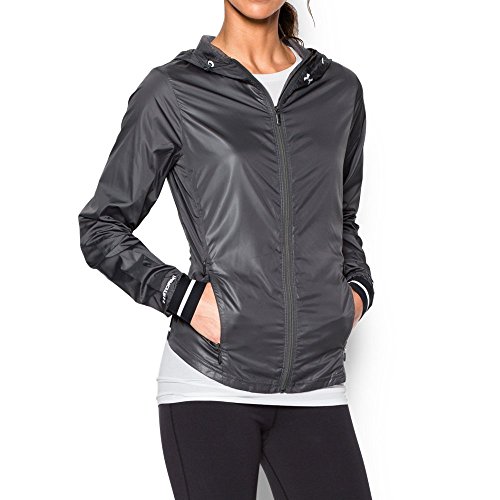 Studio : Under Armour Apparel Publisher : Under Armour Apparel Binding : Sports Product Description UA Storm technology repels water but stays soft breathable for superior comfort. Lightweight woven fabric delivers superior comfort durability. Princess seams create a slimmer, more streamlined silhouette. Generous scuba hood with adjustable bungee drawcords. Back mesh vent for extra breathability. Full zip front for easy layering . Slight asymmetrical hem. Zippered hand pockets. Reflective logos details deliver greater visibility on low-light runs. 0