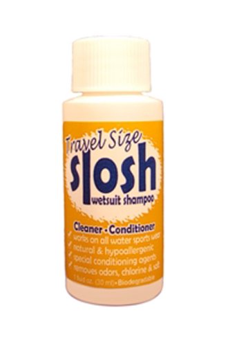 TRAVEL SIZE slosh wetsuit shampoo (cleaner/conditioner) is the most unique wetsuit shampoo ever made. Why?.. Because it's so much more than a typical wetsuit cleaner. slosh contains NO harmful chemicals. It removes salt, chlorine, odors & organic residue while special disinfectant & conditioning agents preserve & extend your equipment's life. slosh's natural "2 in 1 formula" allows you to clean your equipment & yourself. So go ahead.. wash your water sports wear with it.. wash yourself with it.. shampoo your hair with it.. no we're not kidding.. try it you'll love it. Use on wet & dry suits, scuba equipment, swim & water ski wear, hiking & marine wear, snow ski wear & more. Don't wash it.. slosh it.