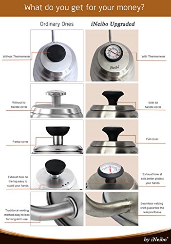 We hereby strongly recommend iNeibo Coffee Kettle with Thermometer to you.This is a new concept coffee kettle.It can solve all those problems for you.