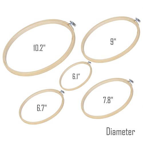 Common Size: 12 by 18-inch aida, embroidery hoop use dimensions: 6.1 inch (15.5cm), 6.7 inch (17cm), 7.8 inch (20cm), 9 inch (23cm), 10.2 inch (26cm); Material of embroidery hoop: Natural bamboo
