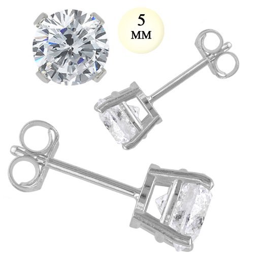 -. Title : Crazy2Shop 14K White Gold 5mm Round Simulated Diamond Prong Setting Earrings, 1.00 cttw