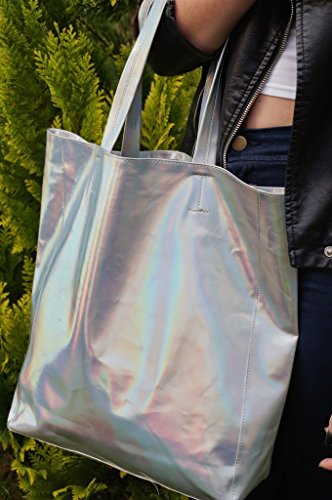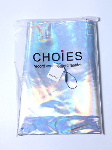 -. Brand : Choies -. Color : Silver -. Department : womens -. Feature : Material:PU / Hologram PU Shopper / 34cm(L)*37cm(H) / Made of high quality laser PU leather with comfortable hand feeling; fashionable and elegant -. Model : ABDL2945-ONESIZE -. ProductGroup : Shoes -. ProductTypeName : HANDBAG -. Size : One Size -. Title : Choies Women's Hologram PU Shopper