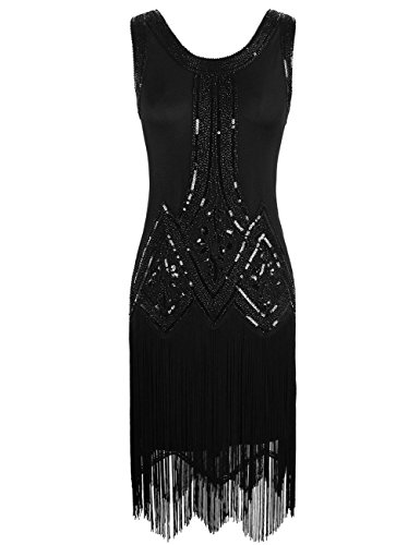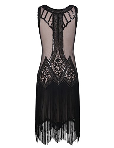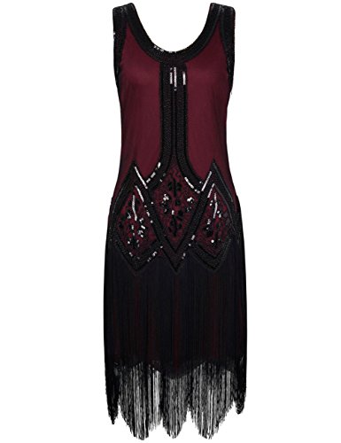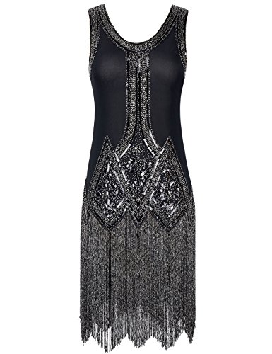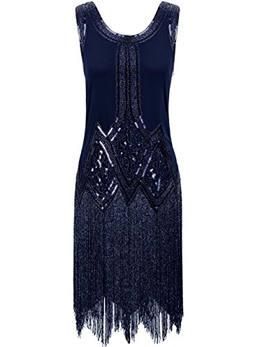 kayamiya Women's Retro Inspired 1920s Sequined Beaded Art Deco Gatsby Flapper Fringe Dress