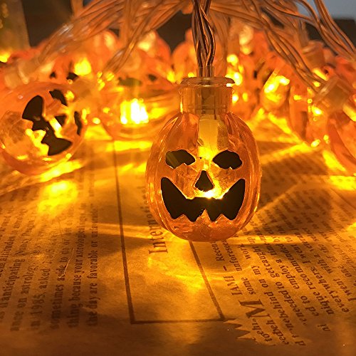 20 LED Halloween String Lights Battery Powered, 7.5ft 3D Jack-O-Lantern Pumpkin Decorative Fairy Lights for Indoor Outdoor Patio Party Festival Decorations