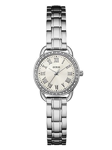 Crystal details surround soft metal dials in this Silver-tone silhouette