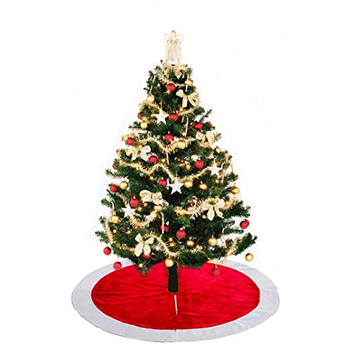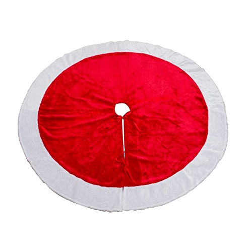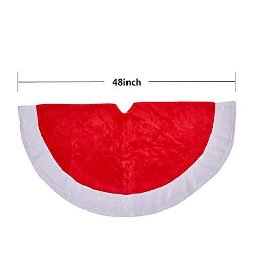 DUTISON 48 INCH PLUSH TRADITIONAL MERCERIZED VELVET LARGE CHRISTMAS TREE SKIRT RED AND WHITE HOLIDAY CHRISTMAS TREE DECORATIONS