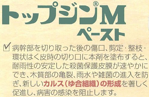 When this product is applied to the wound at the wound, pruning, branching, annular skinning after cutting off the sick stem, a stable rust resistant sterilizing protective film can be promptly formed, cracking of the wood part, entry of rainwater and sterilization
