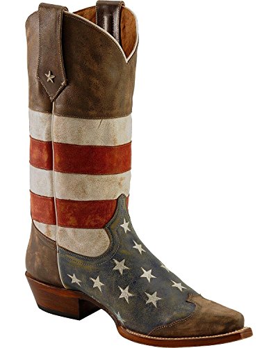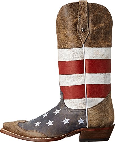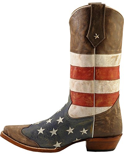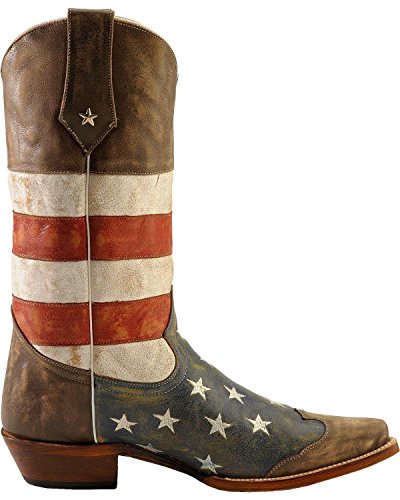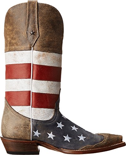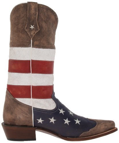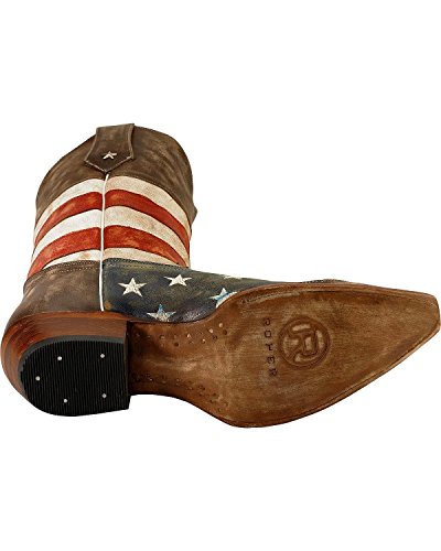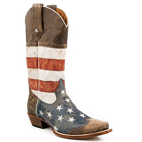 Studio : Roper Footwear Publisher : Roper Footwear Binding : Shoes Product Description Sport patriotic western Roper boots These Roper cowboy boots boasts a blue leather foot with white stars and tan wingtip overlay under a red and white striped 13" leather shaft. Silver-tone star conchos accent pull straps. Single stitched welt and updated pointed toe. Imported. Actual product coloring may vary slightly. 0