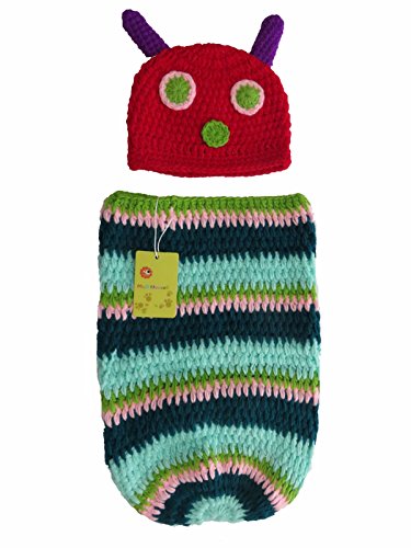 Baby cartoon cute caterpillar outfits ; 100% Handmade crochet clothes with elastic and breathable design, for comfortable to wear