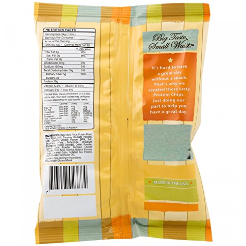 -. Binding : Health and Beauty -. Brand : NutriWise -. EAN : 0753677575240 -. Feature : High Protein - 10 grams Per Single Serving Bag / High Fiber - 5 Grams / Lower Fat - 4 grams Per Single Serving Bag / Each Bag is a Generous Single Serving (No Portioning Needed!) / Only 130 Calories Per Single Serving Bag -. IsAdultProduct : 0 -. Label : NutriWise -. Manufacturer : NutriWise -. PackageQuantity : 7 -. ProductGroup : Health and Beauty -. ProductTypeName : HEALTH_PERSONAL_CARE -. Publisher : NutriWise -. Studio : NutriWise -. Title : NutriWise - Pizza Protein Potato Chips (7 bags) -. UPC : 753677575240