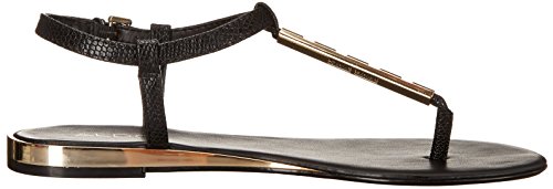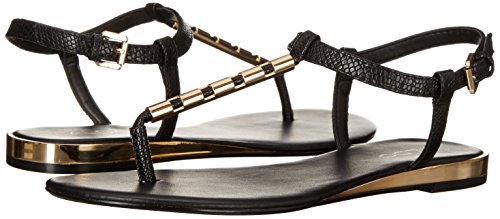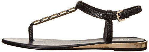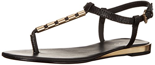 Ladies sling back thong pu sandal with metal tube and ankle fastener