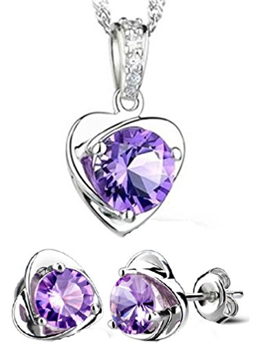 Lieberpaar Retro Damen Dream Amethyst Herz 925 Sterling Silber Hochzeit Schmuck-Set Ohrhanger Ohrringe Creole +Halskette Brautschmuck Schmuckset fur Weinachtengeschenk