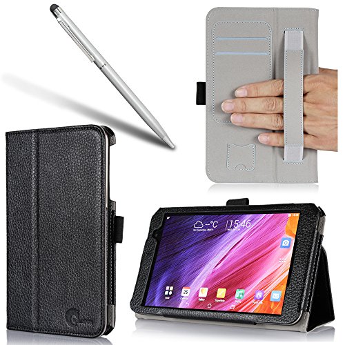 i-BLASON Asus Memo Pad 7 Case [ME176C / ME 176Cx] - Leather Case Cover (Elastic Hand Strap, Multi-Angle, Card Holder) With Bonus Stylus 3 Year Warranty (Memo Pad 7 (176C/176Cx), Black)