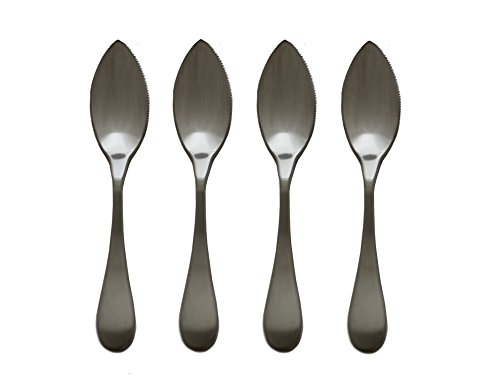 Studio : KNORK Publisher : KNORK Binding : Kitchen Product Description Dig into that juicy grapefruit with the proper utensil. This beautiful modern serrated grapefruit spoon from KNORK makes sure you get every bit of that delicious fruit. Smartly designed with the KNORK styling including a finger platform and rounded handle in brushed stainless. Also suitable for use with oranges and kiwi fruit. 4 - spoons 18/0 5.75” Long 44 Grams 0