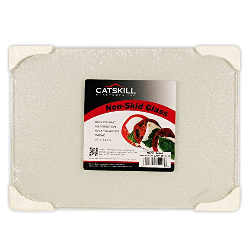 - Catskill Craftsmen Tempered Glass Cutting Board, 10" x 14" -- Professional Grade, Clear with White Edges.