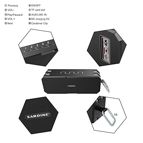 -. Title : Sardine Portable Wireless Bluetooth Speakers 4.0 with Waterproof IP67,20W Bass Sound,Stereo Pairing,Durable Design for iPhone /iPod/iPad/Phones/Tablet/Echo dot,Good Gift(Gray)