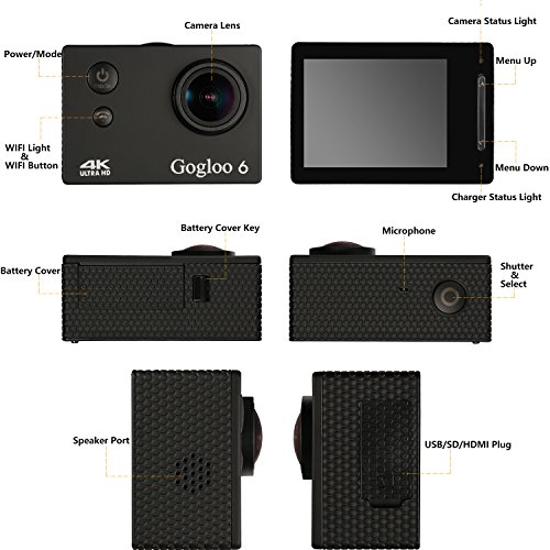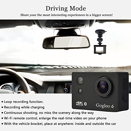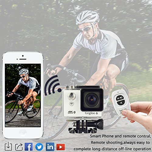 WIRELESS REMOTE CONTROL AND BUILT-IN WIFI & HDMI - Sharing & editing videos and images easily and freely. Download the GOGLOO 6 APP on your smart phone or tablet then connect with action camera, and then you can take full control of the cam.