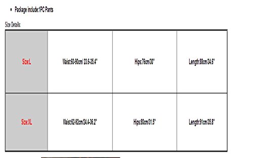 Product DescriptionSpecification: Size Details: Size:L-Waist:60-90cm/ 23.6-35.4",Hips:76cm/30",Length:88cm/34.6" Size:XL-Waist:62-92cm/24.4-36.2",Hips:80cm/31.5",Length:91cm/35.8"0