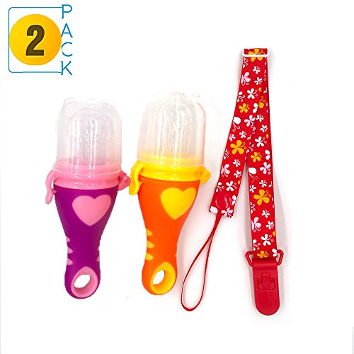 -. Title : Baby Food Feeder, 2-in-1 Feeder Teether Toy for Feeding and Teething , Fresh Fruit Silicone Pacifier Nibbler with Fruit Vegetable Meat for Baby Infant Toddlers kids... (2 Pack)