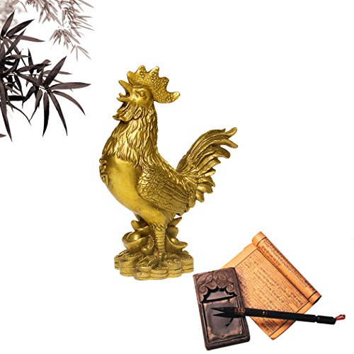 -. Title : Brass Rooster Statue Feng Shui Handmade Chicken Figurine Collection Home Decor