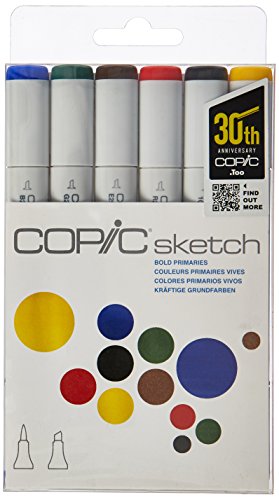 Copic Markers 6-Piece Sketch Set, Bold Primaries