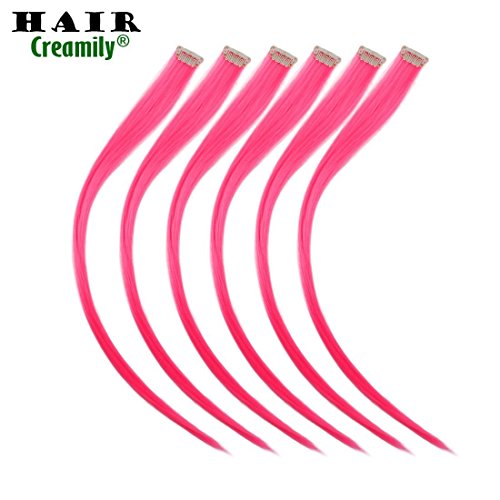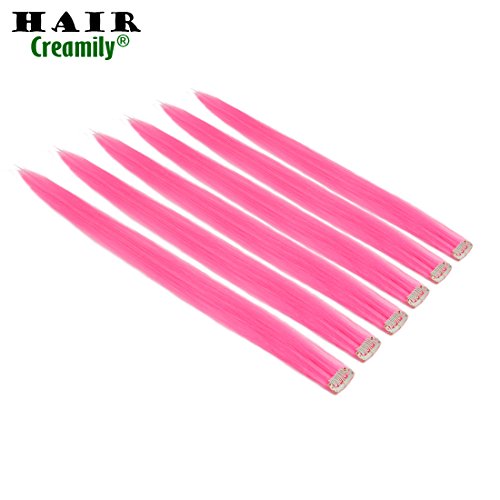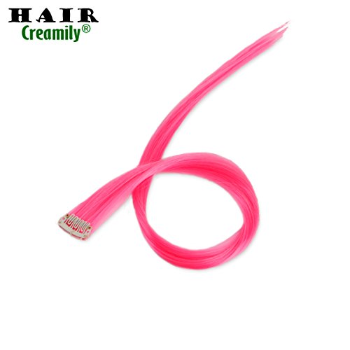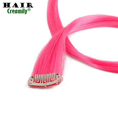 Creamily 12 Pieces of Hot Pink 20" Inches Multi-colors Party Highlights Clip in Synthetic Hair Extensions