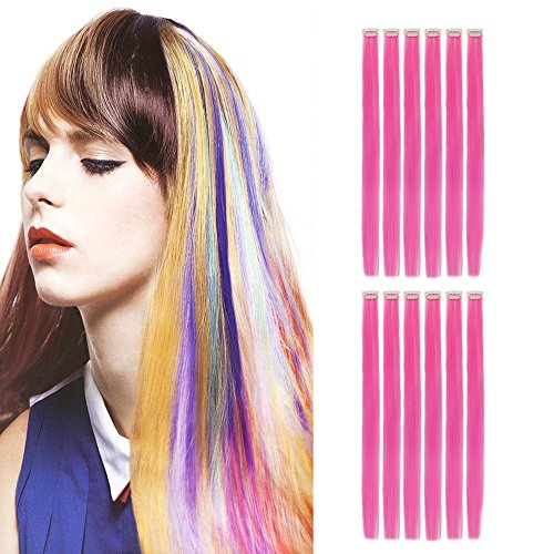 Packing Including: 12 Pieces of Hot Pink Hair Extension