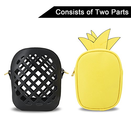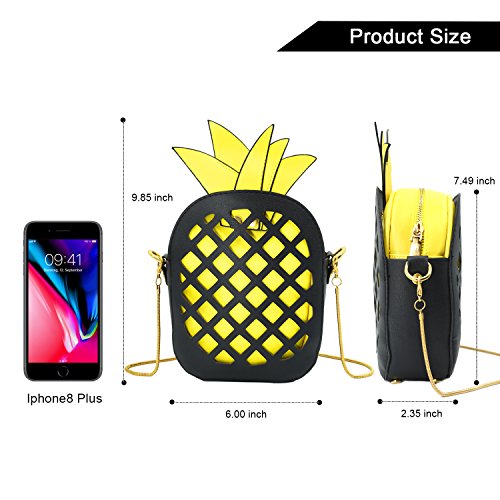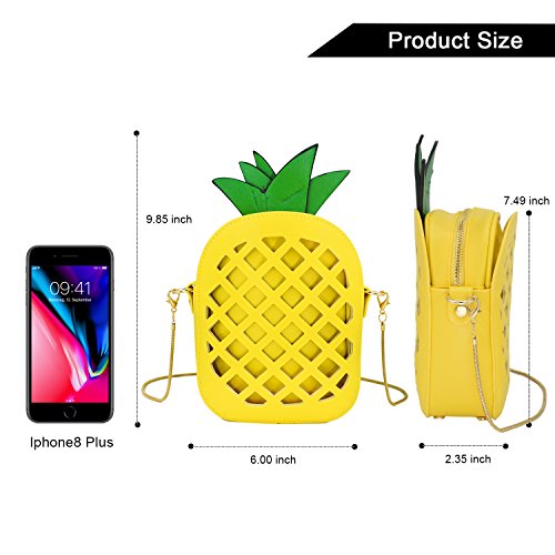 -. Feature : Materia: PU Leather exterior, polyester interior. / Dimension: 7.48*5.6*2.36 inches (L*H*W). / New Fashion Bag: A pineapple shape & hollow out style cross-body bag with golden thin straps and high-quality zipper closure. / Capacity:Small and lightweight clutch has enough room for your cellphone, lipstick, cash and credit cards and other small items. / Casual crossbody bag, suitable for dating, shopping, working, traveling, outdoor and indoor, easy to match your dress.