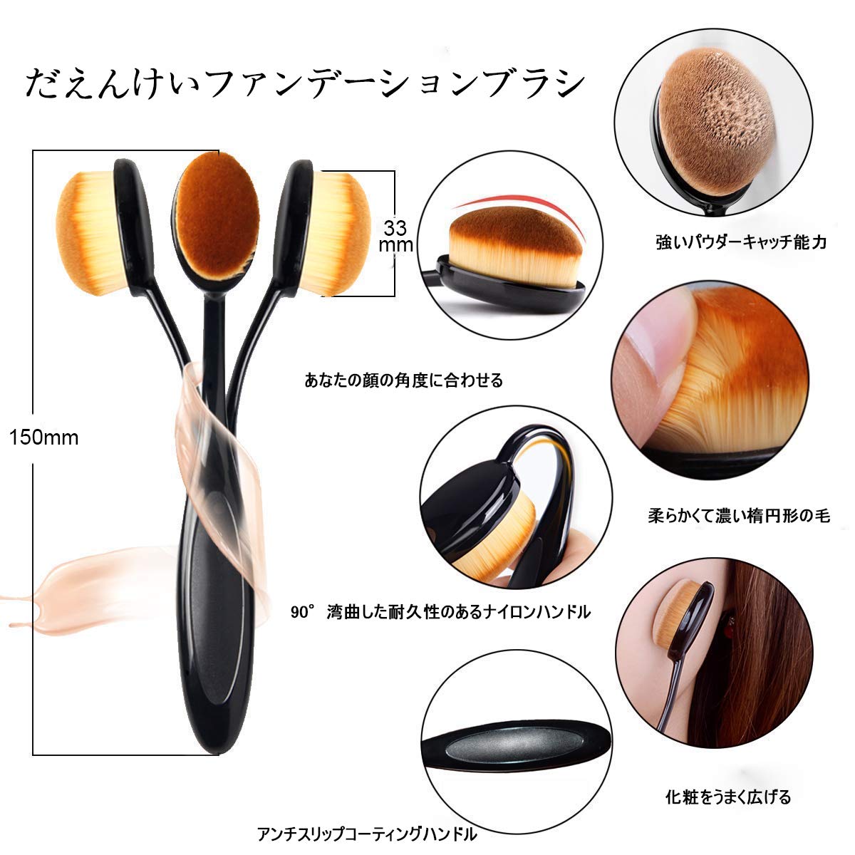 【 皮膚の自然なメイクアップ効果】高強度の剛毛の剛毛と基礎の均一性はエレガントでエレガントです。細部は完全に隠され、皮膚の自然なメイクアップ効果は容易に維持することができます。