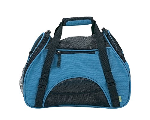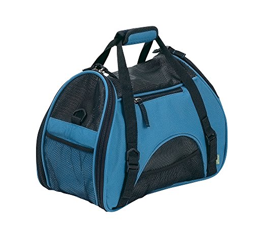 -. Feature : The new Bergan Pet Carriers are airline compatible so you and your pet can travel together with maximum comfort and safety / Pets will enjoy zipper openings on both sides (one half, one full) and mesh panels for max breathability and ventilation / Owners enjoy washable fleece bed, optional shoulder strap, and pet connect? side zipper to safely interact and comfort your pet while traveling / Additional features are bonus identification tag, 3 exterior pockets, reflective strips, safety belt loops?, and zippers / Large size measures 19"l x 13"h x 10"w and is for pets up to 22lbs | Small size measures 16"l x 11.5"h X 8"w and is for pets up to 10lbs
