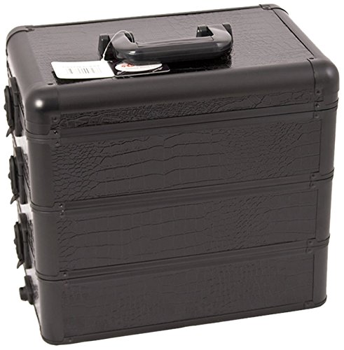 Craft Accents Professional Aluminum Cosmetic Makeup Case, All Black Crocodile, 192 Ounce