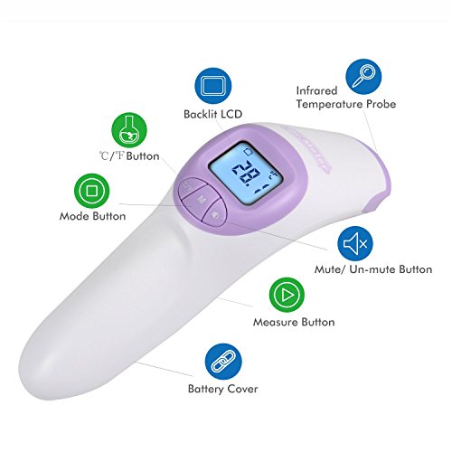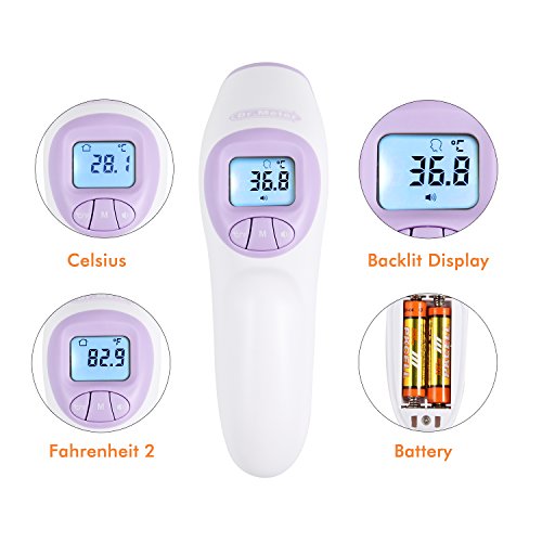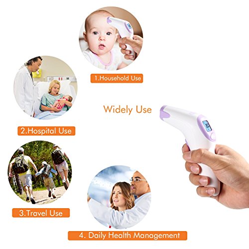 Instant reading -Within 1 second by simply pointing the thermometer at the forehead from a distance of between 3 and 5 cms Can store and recall up to 20 temps to track progress. Display reading in Fahrenheit or Celsius