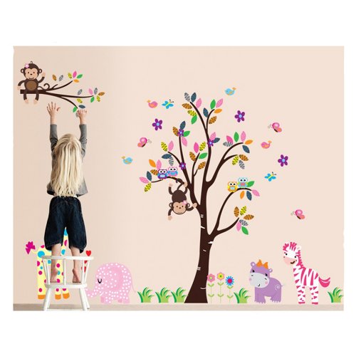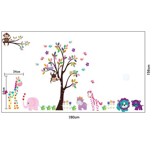 - Title : Win8Fong Colourful Tree With ANIMALs Removable Wall Decals stickers Elephant Monkey Giraffe Lion Zebra Stickers For Childrens Playroom Bedroom or Babies Nursery