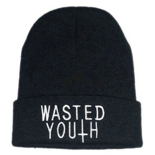 Okstar Wasted Youth Beanie Black Hat Hiphop Knit Beanie Unsex Winter Hat