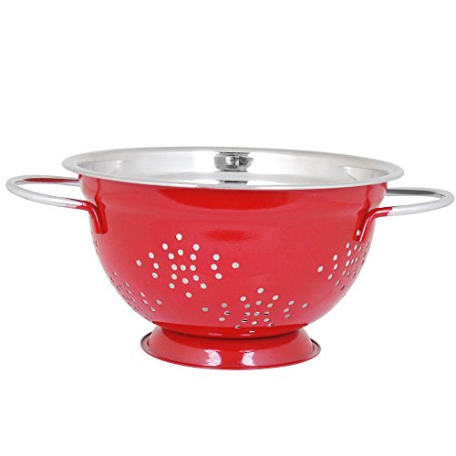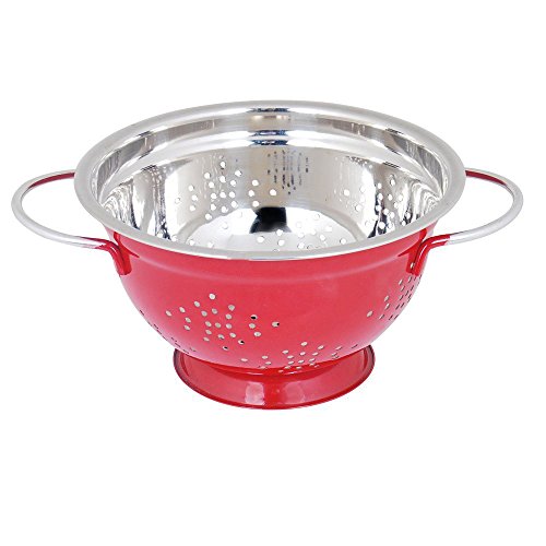 Style: the stainless steel colander has perforations/holes, which let the liquid to drain through. The holes are evenly spaced to allow for adequate drainage. The Colander has a red colour food grade powder coating
