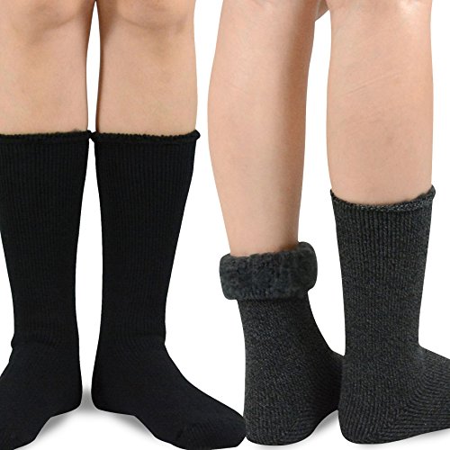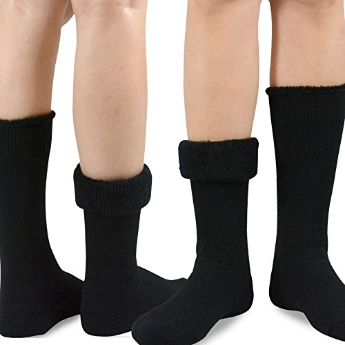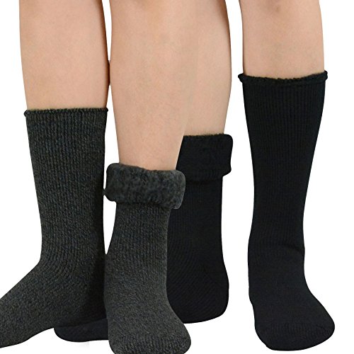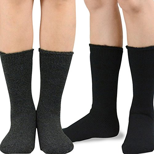 -. Binding : Apparel -. Brand : Teeheesocks -. Color : Black/Heather Black -. Department : womens -. Feature : Take these super warm Acrylic-blend non-binding stretch topped socks with you on journeys so your feet stay nice and cozy. / 7 times warmer than regular cotton socks; Heavily brushed lining for softness & warmth / Our long looped thermal pile technology allows our socks to hold in more warm air to your feet for extra comfort. / Perfect gifts for holidays! Send these to show some fun holiday spirit! / Sizing Guidelines: 10-13 for Men, Men's shoe sizes 8-12 1/2 and 9-11 for Women, Women's shoe sizes 6 - 9 -. IsAdultProduct : 0 -. PackageQuantity : 2 -. ProductGroup : Apparel -. ProductTypeName : SOCKSHOSIERY -. Size : 10-13 -. Title : TeeHee Super Warm Brushed Thermal Crew Socks 2 Pairs Pack